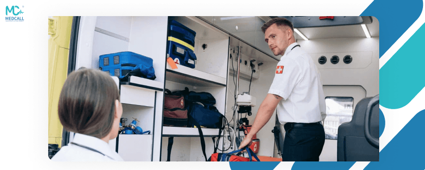 تعمل ميدكول على تقديم خدمات طبية طارئة ذات جودة عالية لضمان سلامة وصحة المرضى والمصابين. تواصل معنا الاّن للحصول على خدمات إسعاف موثوقة وفورية، سلامتك هي أولويتنا القصوى.